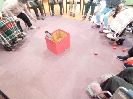 入居者様も夢中で箱に玉を入れています。