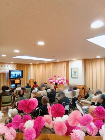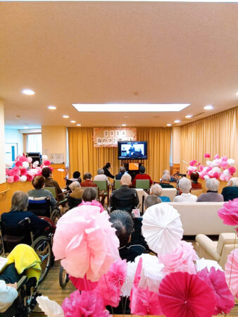 本日は、「春のオンラインコンサート」を1階ラウンジと4階食堂で開催しました。