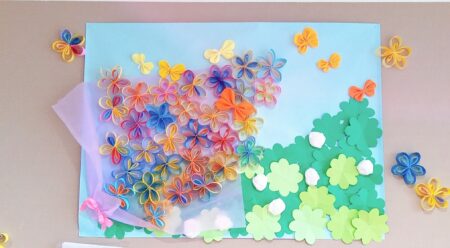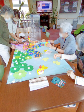 本日は、壁面画の「春の花束と四葉のクローバー」を作りました。