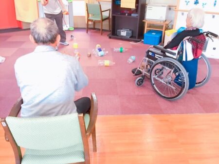 入居者様からは、「ボールがペットボトルに当たると気持ちい。」や 「次は上手くできるようになりたい」と喜ばれていました。