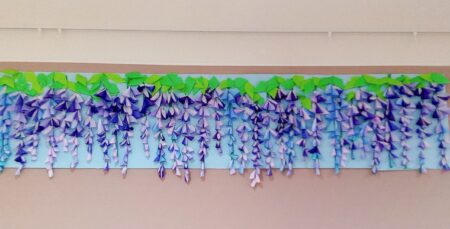 本日は、「藤の花の壁面画」を作りました。