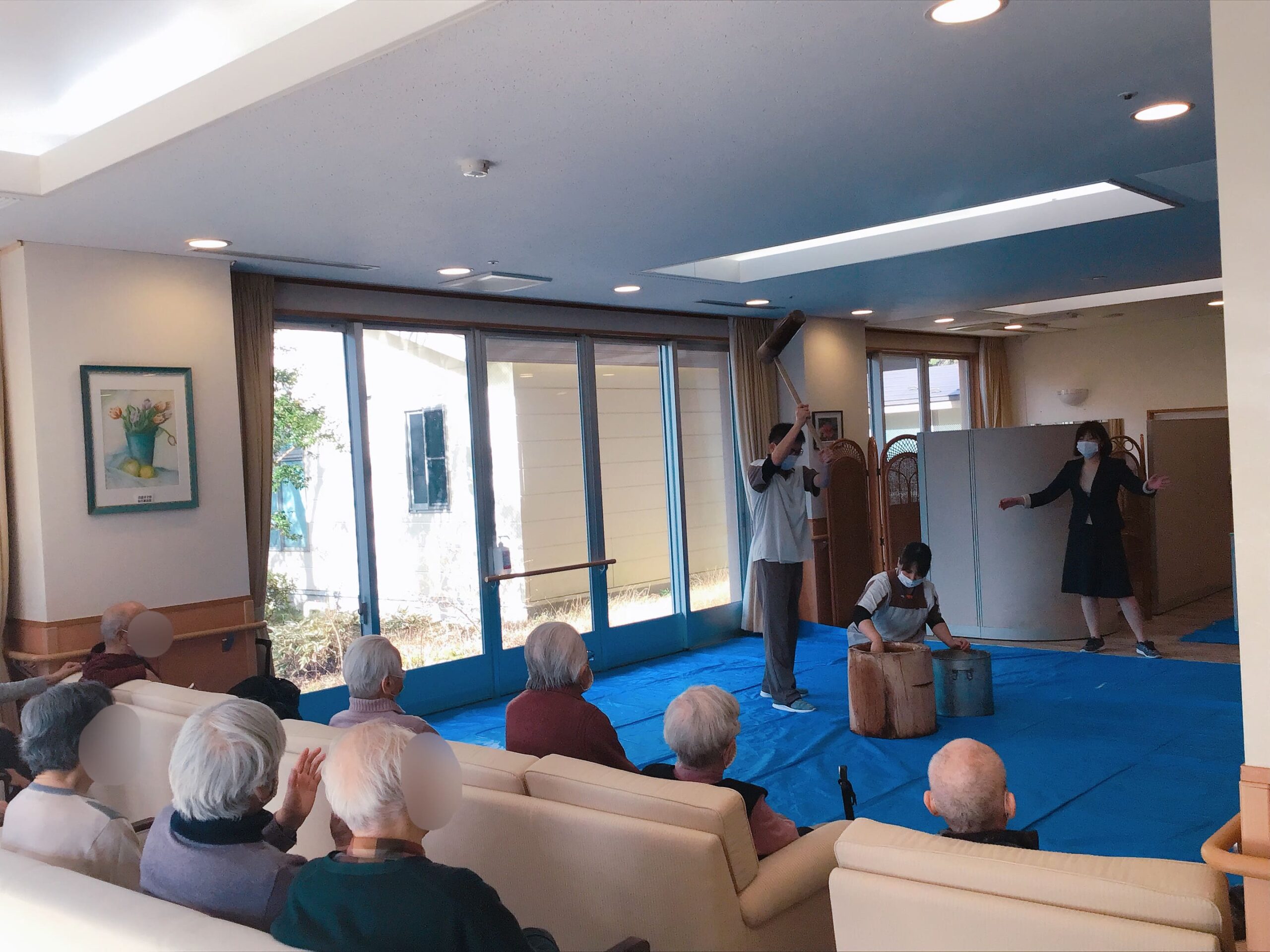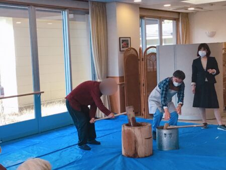 本日は施設のラウンジで「餅つき」をおこないました。