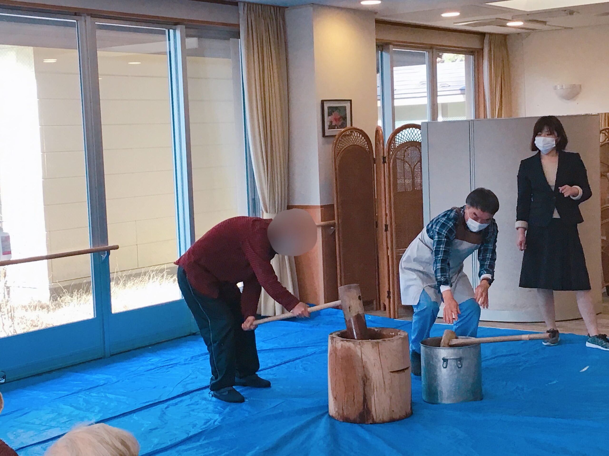 入居者様が杵で餅をつきました。